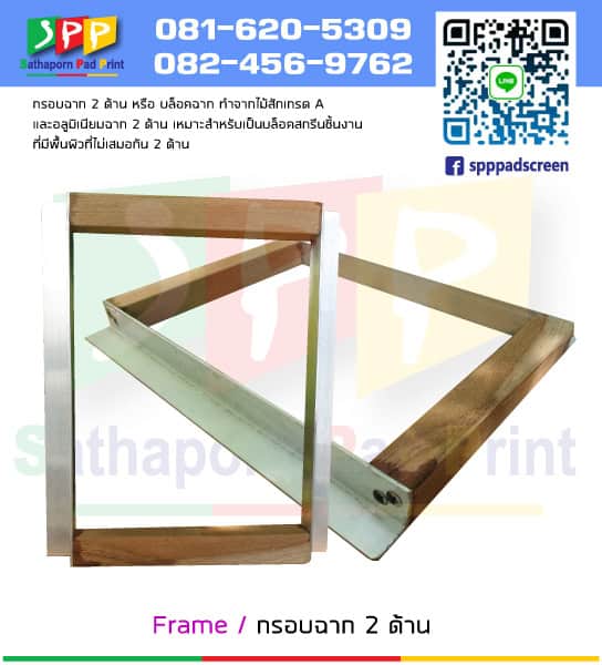 กรอบฉาก 2 ด้าน อุปกรณ์การพิมพ์สกรีน กรอบบล็อคสกรีน บล็อคฉาก ทำจากไม้สักคุณภาพสูง ผสมกับอลูมิเนียมฉาก 2 ด้าน เหมาะสำหรับเป็นบล็อคสกรีนชิ้นงานที่มีพื้นผิวที่ไม่เสมอกัน 2 ด้าน เช่น เป็นบล็อคสกรีนชิ้นส่วนหน้ากากแอร์ สามารถกำหนดระยะ Artwork ห่างจากขอบฉากได้ ซึ่งอุปกรณ์การพิมพ์สกรีนนี้จะทำให้ง่ายต่อการงานสกรีน
