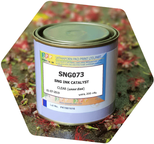 แคตตาลิสต์ SNG073 น้ำยาผสมหมึกพิมพ์ เพิ่มการยึดเกาะของสีหมึก ใช้เป็นส่วนผสมของหมึกพิมพ์รหัส SNG ทำให้การยึดเกาะติดแน่นมากยิ่งขึ้น เหมาะกับงานพิมพ์โลหะ กระจก โดยใช้อัตราส่วน หมึกพิมพ์ SNG : SNG073 = 5 : 1 โดยน้ำหนัก ผสมแล้วใช้ให้หมดภายใน 6 ชม.