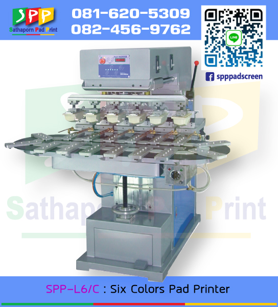 หจก.สถาพร แพด พริ้น นำเข้าและจำหน่าย เครื่องแพด รุ่น SPP-L6/C : Six Colors Pad Printer with Conveyor