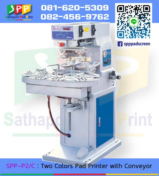 สถาพร แพด พริ้น นำเข้า จำหน่าย เครื่องพิมพ์ 2 สี รุ่น SPP-P2/C : Two Colors Pad Printer with Conveyor