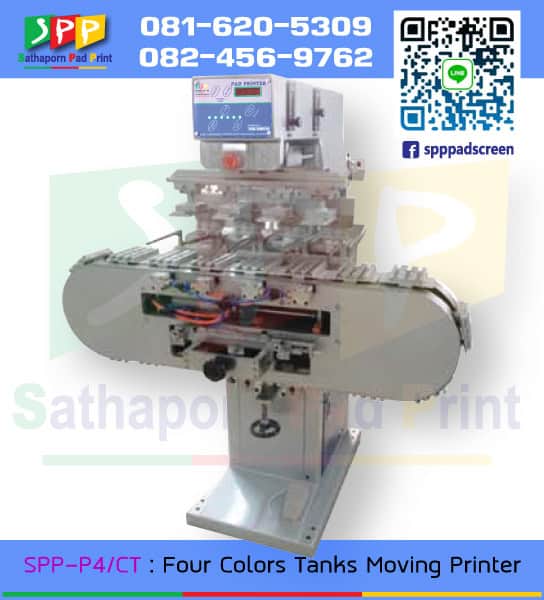 เครื่องพิมพ์แพด 4 สี รุ่นนี้ เหมาะสำหรับการทำงานที่หลากหลาย สามารถตั้งจำนวนครั้งใจการพิมพ์ได้ตามความต้องการ รุ่นนี้ขายดี เหมาะกับงานที่ต้องทำหลายขั้นตอน เครื่องพิมพ์แพด 4 หัว รุ่น SPP-P4/CT Four Colors Tanks Moving Printing Machine รุ่นนี้เหมาะมากที่จะทำให้การพิมพ์โลโก้ พิมพ์ตราสินค้าของคุณเป็นเรื่องที่ง่ายดาย