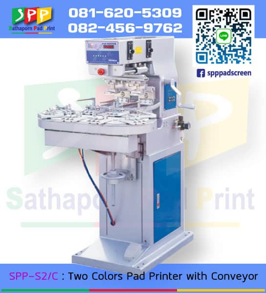 สถาพร แพด พริ้น นำเข้า จำหน่าย เครื่องแพด สกรีน เครื่องพิมพ์ 2 สี รุ่น SPP-S2/C : Two Colors Pad Printer with Conveyor